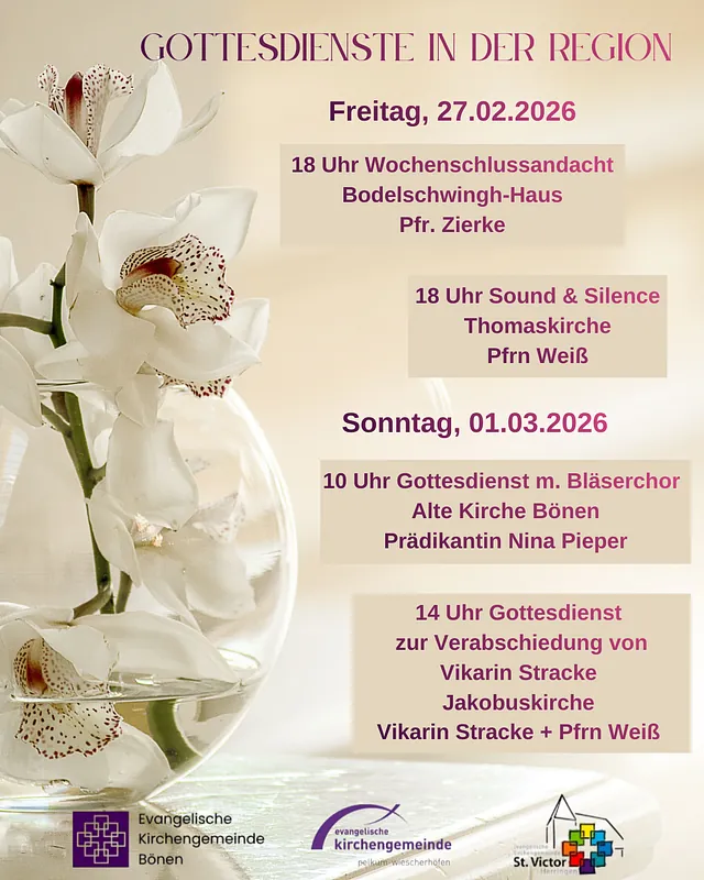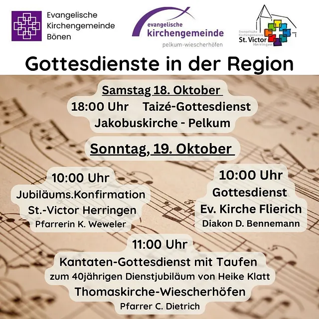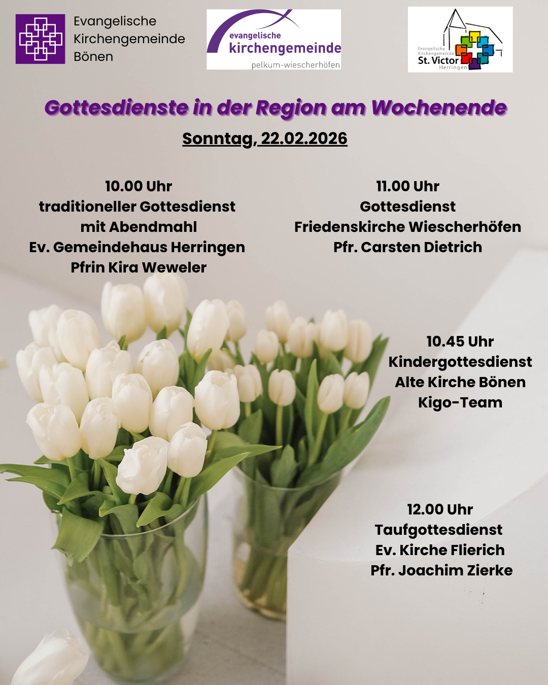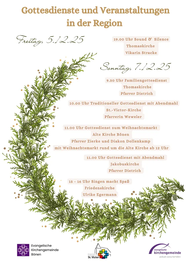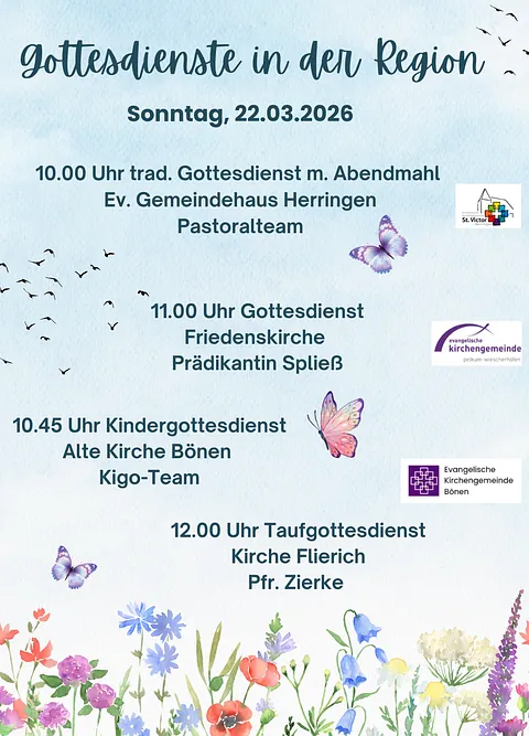 Unser Kirchengemeinde ist eng mit den Nachbargemeinden Herringen und Bönen verbunden, deshalb sind Sie auch immer zu den Gottesdiensten dort eingeladen.
