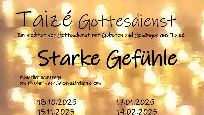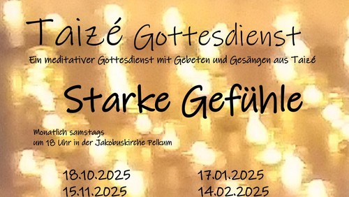 Von Oktober bis Ostern feiern wir in der Jakobuskirche wieder Taizé-Gottesdienste. Immer am Samstag vor dem dritten Sonntag im Monat um 18 Uhr.